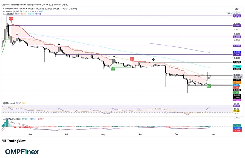در صورتی که قیمت روزانه پای نتورک بالاتر از میانگین متحرک نمایی ۵۰ روزه (50D-EMA) در ۰/۲۶۱۹ دلار بسته شود، یک روند صعودی جدید تأیید خواهد شد که میتواند قیمت را به سمت ۰/۳۲۲ دلار و سپس ۰/۴ دلار سوق دهد.