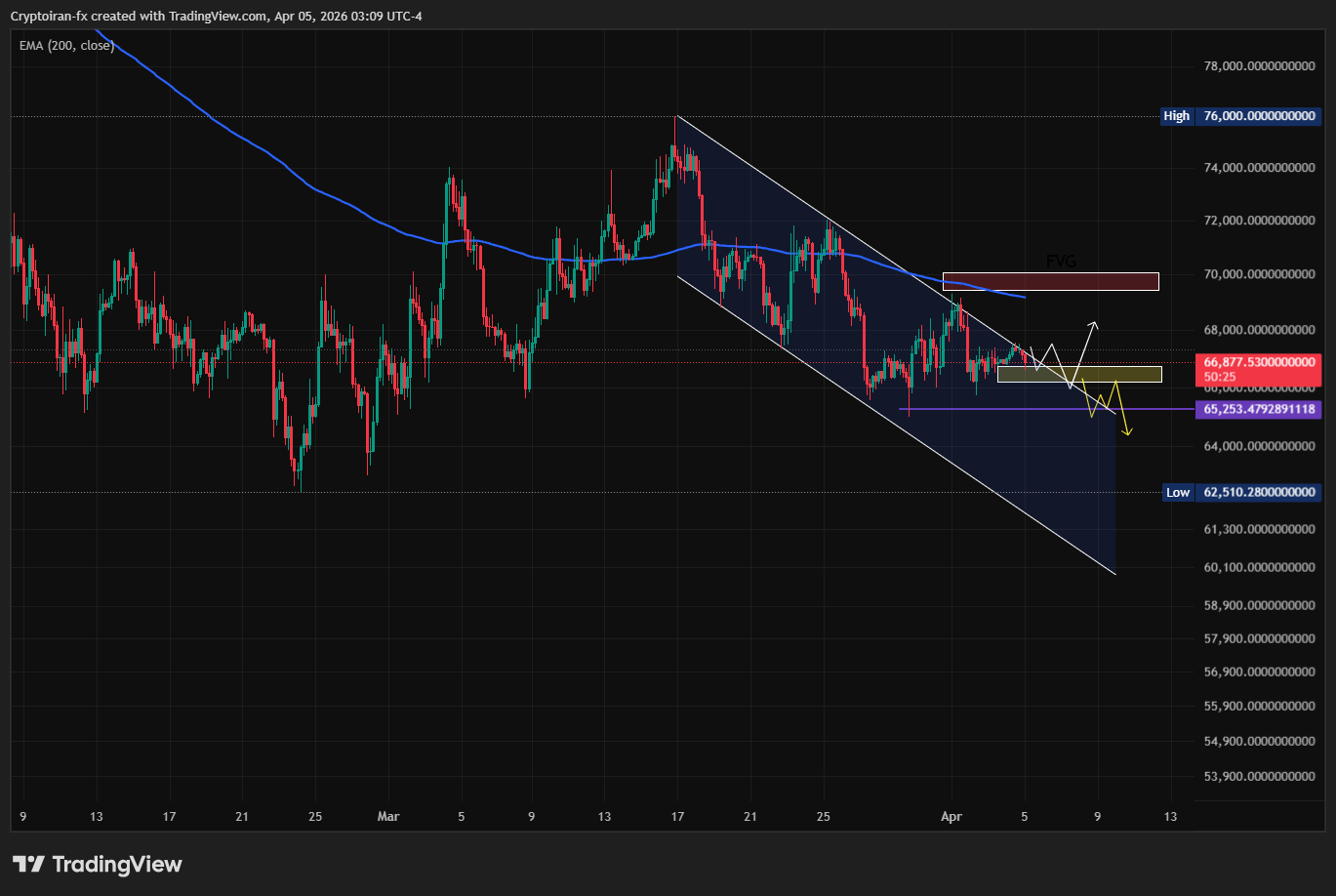 در ادامه، اگه این حمایت از دست بره، سناریوی نزولی پررنگتر میشه و میتونه قیمت رو دوباره به سمت محدودههای پایینتر مثل ۶۵ و حتی ۶۳ هزار دلار بکشونه.