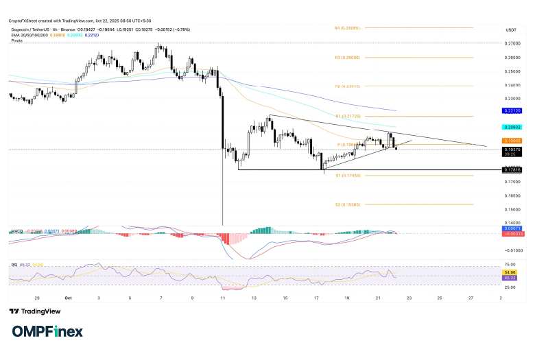 DOGE، بزرگترین میمکوین بازار، همچنان نتوانست بالای حمایت روانی ۰/۲ دلار باقی بماند و در نمودار ۴ ساعته یک سقف پایینتر جدید ثبت کرده است. این ارز در حال نزدیک شدن به سطح حمایت کلیدی ۰/۱۷۸۱ دلار است. اندیکاتورهای فنی، بهویژه MACD با عبور از خط سیگنال خود، تضعیف مومنتوم صعودی و افزایش فشار فروش را تأیید میکنند. اگر DOGE بخواهد روند بازگشتی را شروع کند، باید بتواند از سقف روز سهشنبه یعنی ۰/۲۰۵۶ دلار عبور کند.