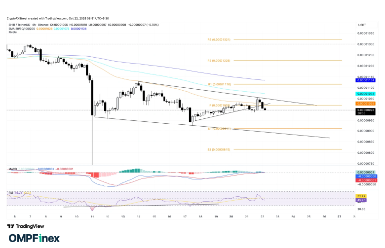 از سوی دیگر شیبا نیز در حال حاضر زیر مرز روانی ۰/۰۰۰۰۱ دلار معامله میشود و خطر سقوط به سمت حمایت ۰/۰۰۰۰۰۹۱۱ دلار وجود دارد. شاخصهای مومنتوم، از جمله اندیکاتورهای MACD و RSI زیر سطح میانی (۴۵)، نشاندهنده کاهش فشار خرید هستند. برای تأیید روند صعودی، SHIB باید بتواند بالای میانگین متحرک نمایی ۱۰۰ دورهای (EMA) در ۰/۰۰۰۰۱۰۷۳ دلار تثبیت شود.