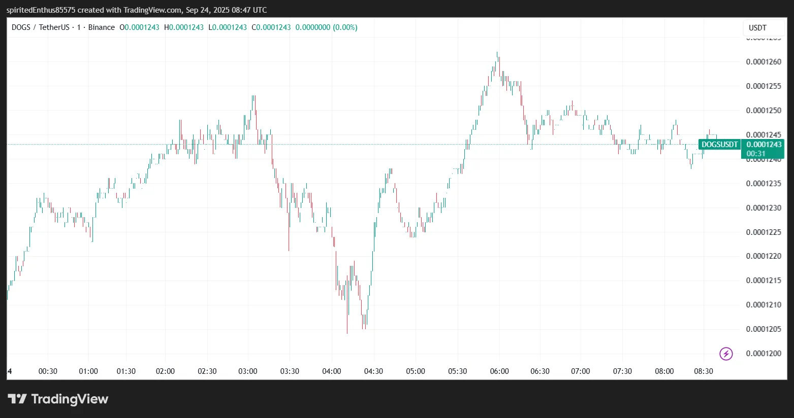 طبق تحلیل روند ارز داگز در تایم فریم روزانه، به نظر میرسه قیمت این ارز بعد از افت سریع تا حوالی ۰.۰۰۰۱۲۰۰ دلار، با یک برگشت سریع جمع شد و الان حول ۰.۰۰۰۱۲۴۰–۰.۰۰۰۱۲۴۵ دلار رنج میزنه. ساختار کفهای بالارونده حفظ شده اما کمی بالاتر یک مقاومت در محدوده ۰.۰۰۰۱۲۵۵–۰.۰۰۰۱۲۶۸ دلار داریم که هر بار شتاب رو کم میکنه. تا وقتی قیمت بالای ۰.۰۰۰۱۲۳۶–۰.۰۰۰۱۲۴۰ دلار باقی بمونه، بایاس من خنثی و کمی صعودیه. یعنی انتظار نوسان رو به بالا دارم.