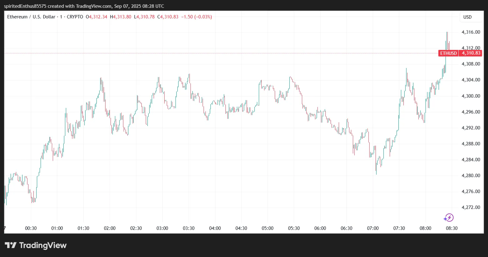 اتریوم الان حوالی محدوده ۴,۳۱۰ دلار معامله می‌شه و همون‌طور که تو نمودار پیداست، بعد از یه ریزش کوتاه از کف ۴,۲۷۰ دلار دوباره تقاضا برای خرید اتریوم اومده تو بازار و قیمت رو کشونده بالا.