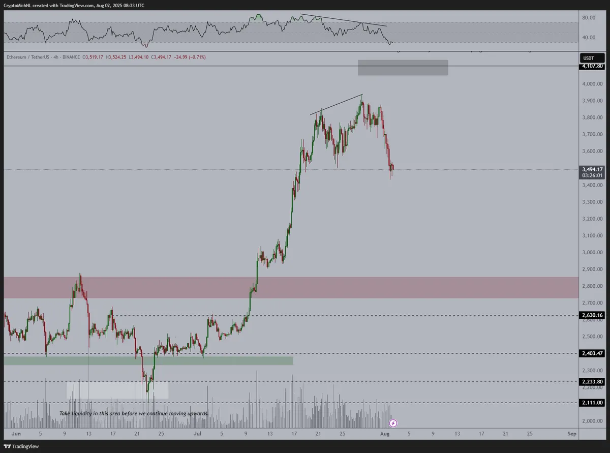 با توجه به داده‌های تکنیکال و رفتار قیمتی اخیر، در تحلیل اتریوم به این نتیجه رسیدم که سطح ۳,۳۰۰ دلار یک حمایت کلیدی برای ادامه روند صعودی محسوب می‌شه. قیمت اتریوم الان روی ۳,۴۱۵ نوسان می‌کنه اما اگه این حمایت حفظ بشه، احتمال برگشت به محدوده‌ ۳,۸۰۰ کاملا وجود داره. از دید من، محدوده‌ ۳,۰۰۰ تا ۳,۱۰۰ نه‌تنها یک کف قوی داره می‌سازه، بلکه تبدیل به منطقه‌ انباشت سرمایه‌گذاران بلندمدت شده. این سطح هم‌زمان می‌تونه تبدیل به همون نقطه «ورود طلایی» خرید اتریوم برای جا‌مانده‌ها از پامپ جولای باشه.