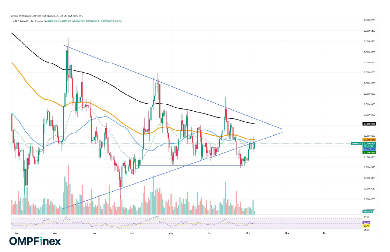 علاوه بر این، شاخص قدرت نسبی (RSI) ارز دیجیتال SHIB در منطقه خنثی (حدود ۵۴) قرار دارد که نشان میدهد در صورت افزایش فشار خرید، فضای کافی برای رشد وجود خواهد داشت. همچنین، پس از هفتهها رکود، حجم معاملات نیز بهبود یافته که میتواند نشانهای از انباشت تدریجی باشد.
