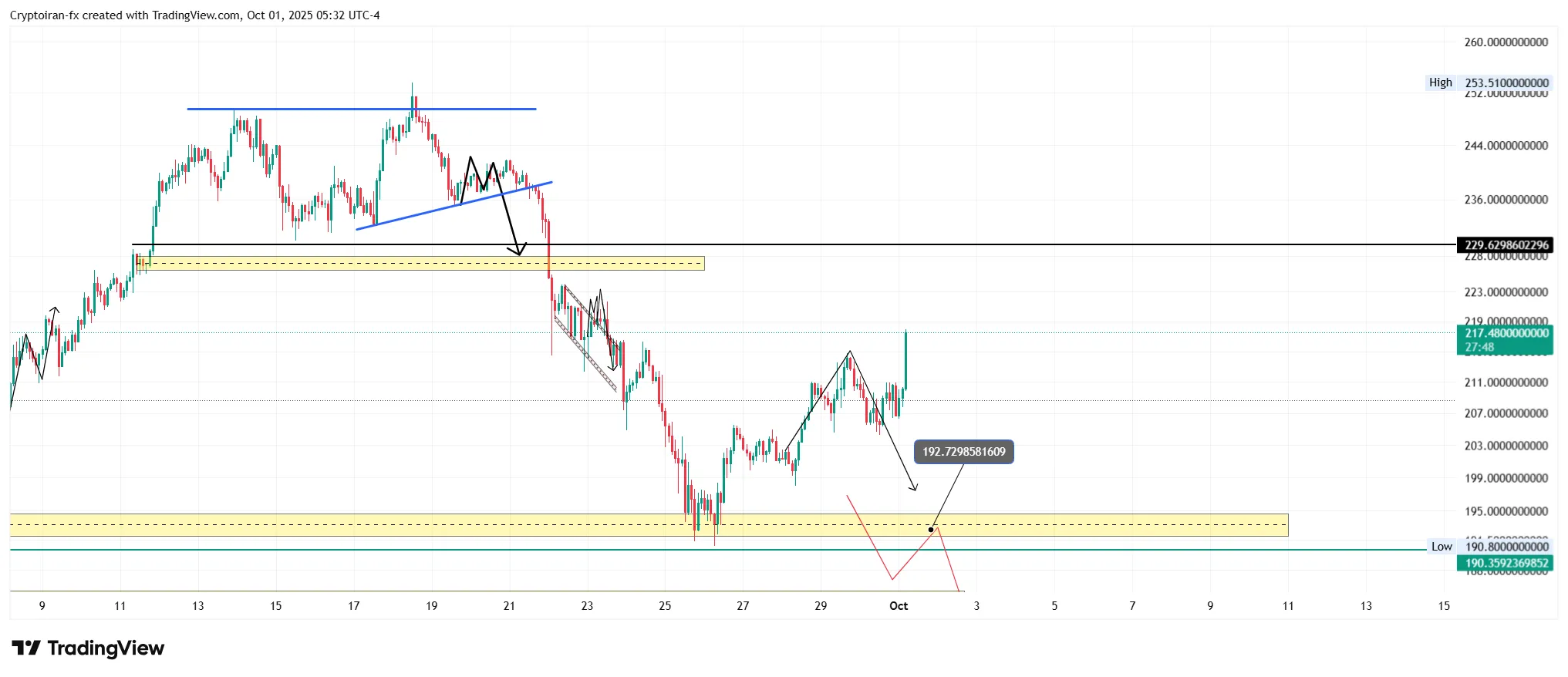 سولانا در مقاومت ۲۱۵ دلار؛ آیا حمایت ۲۰۰ دلار میشکند؟