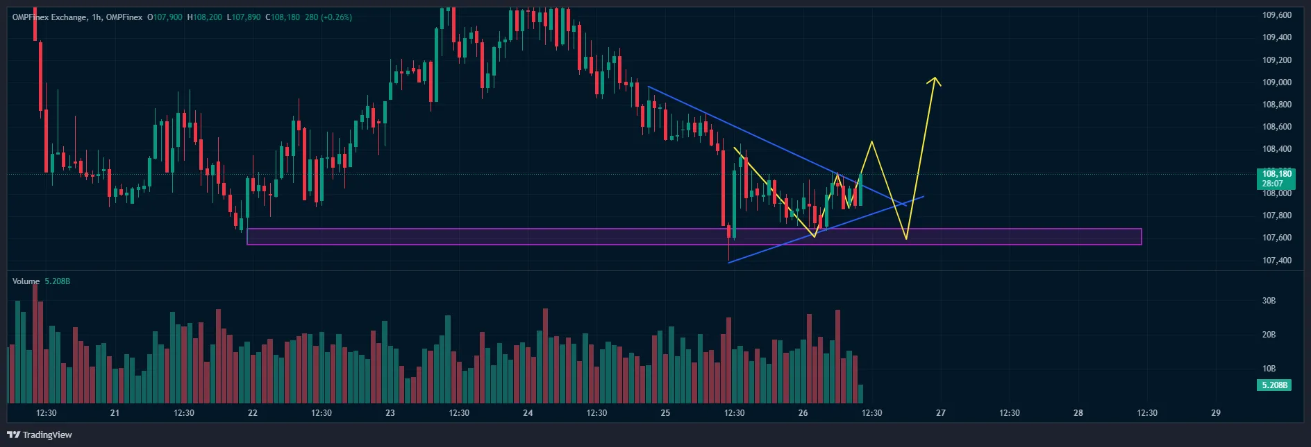 تتر در تایمفریم ۱ ساعته، ساختار صعودی خوبی روی ناحیه حمایتی تشکیل داده. با توجه به اینکه روند کلی قیمت صعودیه و تتر بالای سطح تقاضاست، میتونیم بعد از عبور قیمت از سطح ۱۰۸۵۰۰ تومان، انتظار یک پولبک کوتاه و بعد ادامه رشد قیمتی رو داشته باشیم. اگه به هر دلیلی ناحیه ۱۰۷ تا ۱۰۷۵۰۰ تومان از دست بره، میتونیم انتظار رسیدن قیمت به محدوده ۱۰۵ و بعد ۱۰۴ هزار تومان رو داشته باشیم. در کل روی ناحیه فعلی یک پله به تارگت ۱۰۹ هزار تومان خرید تتر رو میبینید.