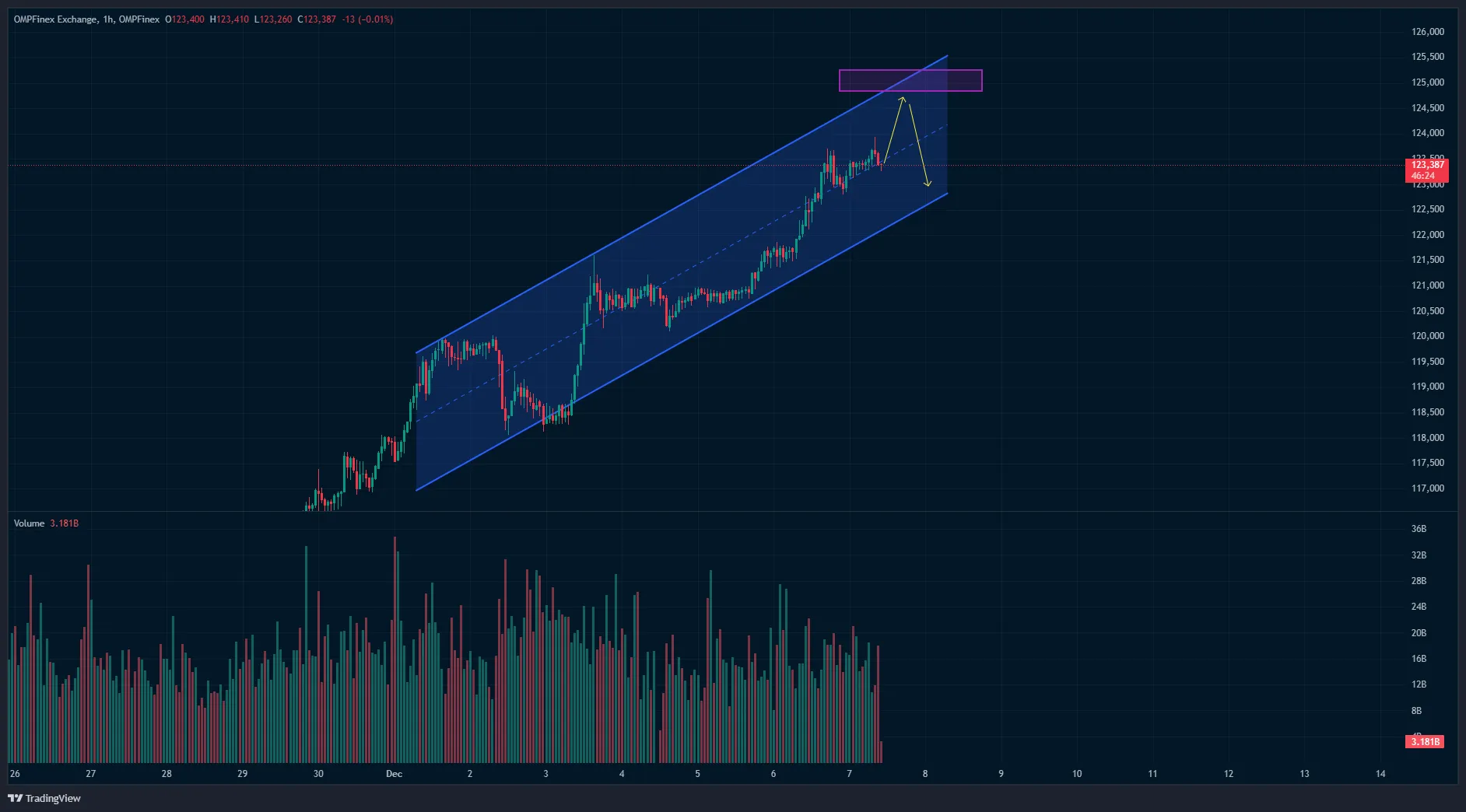 تتر در تایمفریم ۱ ساعته، موفق شد هدف ۱۰۹۵۰۰ تومان رو که در تحلیلهای قبلی اشاره کرده بودم تاچ کنه. با رسیدن قیمت به سطح ۱۰۹۵۰۰ تومان مومنتوم فروش زیاد شد و قیمت کف کانال صعودی خودش رو از دست داد. درحالحاضر دو سناریوی محتمل برای قیمت تتر وجود داره.سناریوی اول اینه قیمت به سرعت داخل کانال صعودی خودش برگرده و بعد از تثبیت به سمت هدف ۱۰۹ و بعد ۱۱۰ هزار تومان حرکت کنه. در این صورت میشه با دیدن تاییدیه کندلی وارد موقعیت خرید تتر تا سقف کانال صعودی شد.سناریوی دوم برای زمانی که قیمت نتونه به کانال صعودی خودش برگرده، در این صورت میشه بعد از تکمیل پولبک و دیدن تاییدیه کندلی، وارد پوزیشن فروش شد.