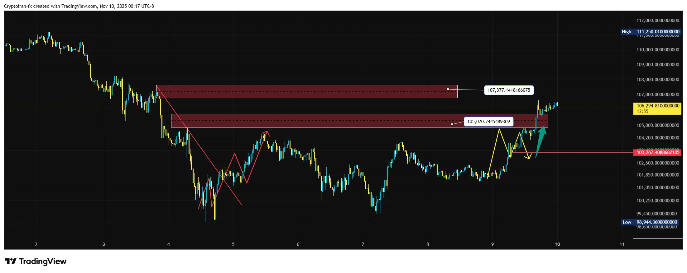 با رسیدن قیمت بیت کوین به سطح ۱۰۶ هزار دلار، موجی از اعتماد و خوش‌بینی به بازار ارزهای دیجیتال برگشت. یکی از دلایل رشد بازار، اجرای احتمالی لایحه عدم تعطیلی دولت آمریکاست که خود ترامپ اعلام کرد به زودی این لایحه تصویب می‌شه. همچنین کاهش  قیمت نفت از دلایل بعدی رشد تقاضاست. اگه مومنتوم صعودی در بازار ادامه داشته باشه، این ارزها می‌تونن با نوسانات زیادی همراه بشن.