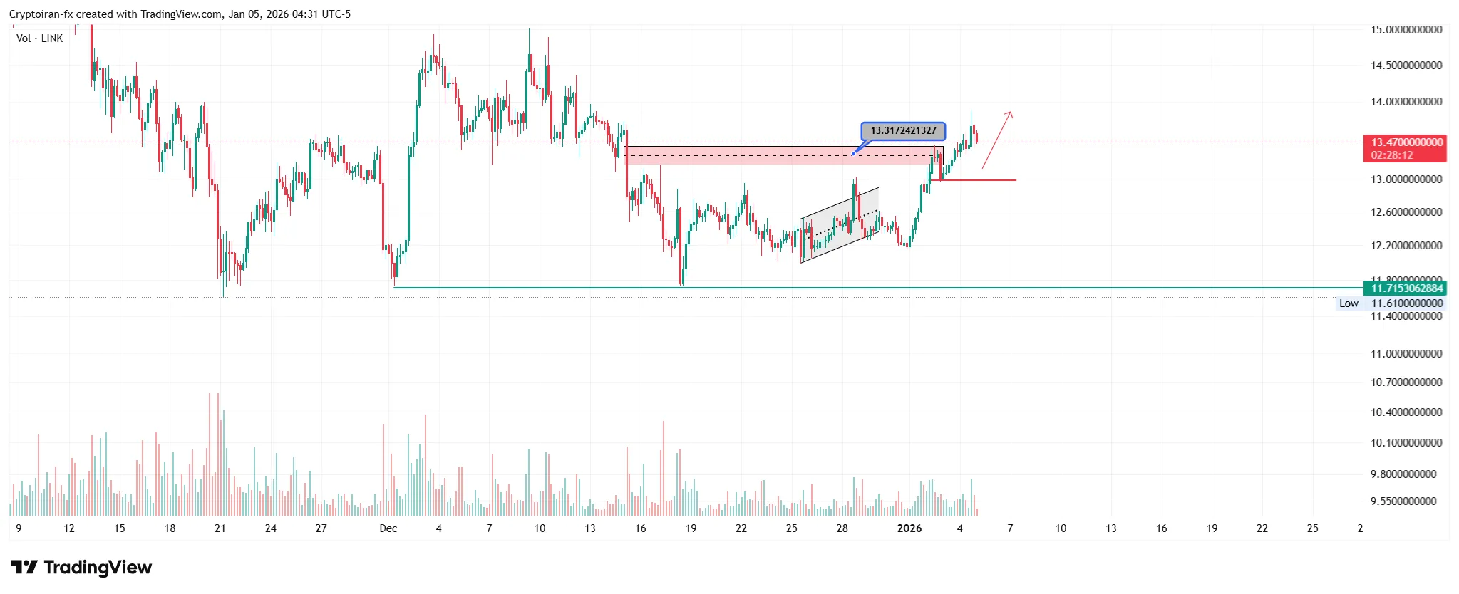 ارز چین لینک این هفته هم باید زیر نظر گرفته بشه. این ارز هفته پیش هم در واچ لیست ما بود و به تارگت ۱۳.۳ دلاریش اشاره کرده بودیم که این اتفاق به طور دقیق رخ داد. در حال حاضر قیمت بالای ناحیه عرضه خودش قرار داره و میتونه با حفظ این سطح به روند صعودی خودش ادامه بده. اگه کف ۱۲.۹ دلار از دست بره و قیمت low پایینتری رو شکل بده، میتونیم در پولبک به سطوح مصرف نشده وارد پوزیشن شورت بشیم.