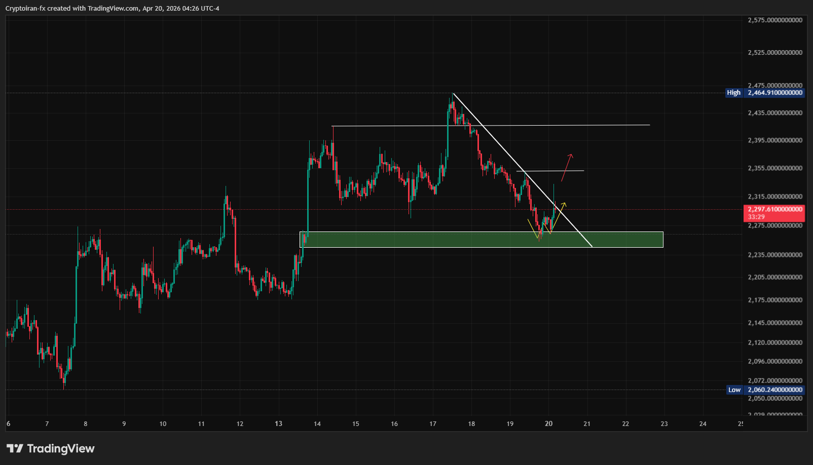 اگه قیمت اتریوم در تایم فریمهای پایینتر بتونه مقاومت ۲۳۵۰ دلار رو با قدرت بشکنه، میتونیم انتظار ادامه روند صعودی بعد از تکمیل پولبک رو داشته باشیم.