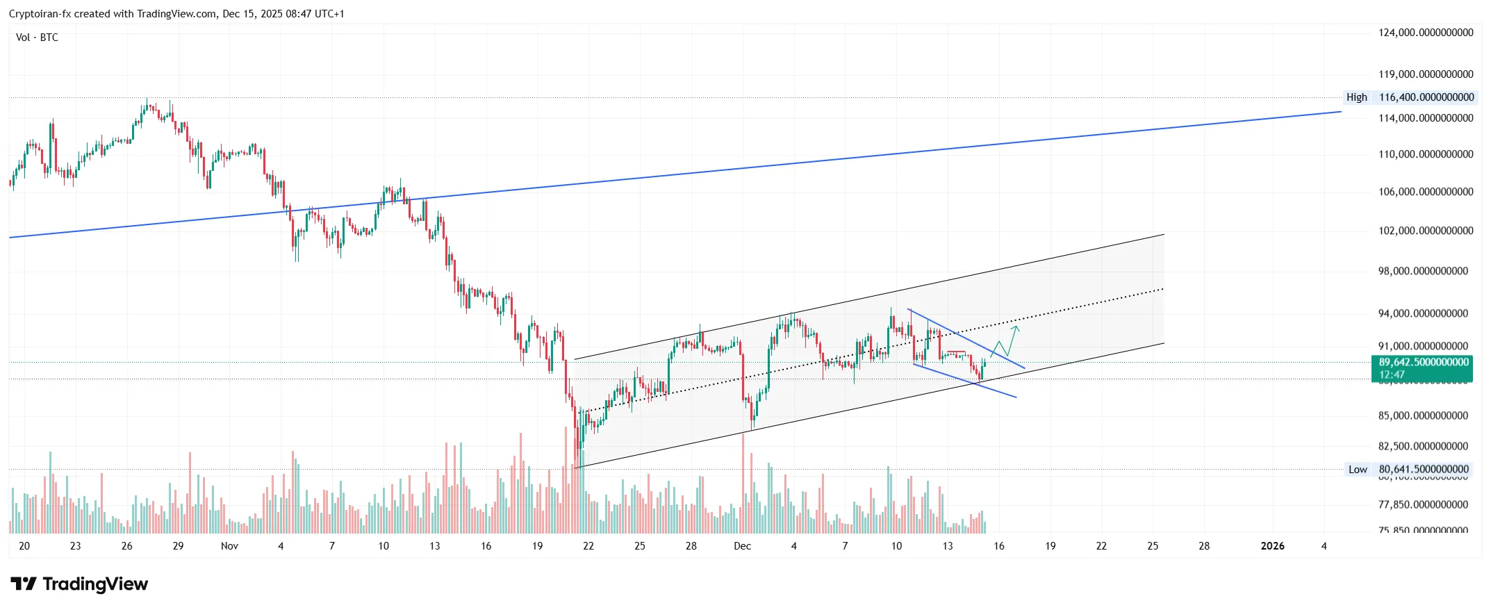 بیت کوین در تایم فریم ۴ ساعته در یک کانال صعودی قرار داره و با ریزش اخیر مجدد کف کانال رو تست کرد. همچنین قیمت در یک الگوی وج قرار گرفته که اگه بتونه از سقف الگو پر قدرت به سمت بالا خارج بشه، میتونیم انتظار یک لگ صعودی دیگه تا میدلاین کانال و محدوده ۹۲۰۰۰ دلار رو داشته باشیم. رشد احتمالی بیت کوین میتونه جرقهای برای رالی آلت کوینها باشه. در این واچ لیست، ارزهایی که باید این هفته زیرنظر بگیرید رو بررسی کردیم.
